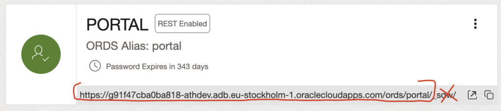 SQL> connect portal@https://g91f47cba0ba818-athdev.adb.eu-stockholm-1.oraclecloudapps.com/ords/portal/